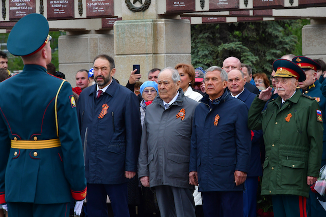 После минуты молчания прозвучали государственные гимны России и Татарстана, а затем торжественным маршем прошла рота почетного караула Казанского гарнизона.