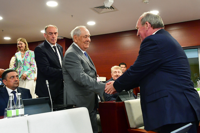 Раис Татарстана Рустам Минниханов и Государственный Советник РТ Минтимер Шаймиев приняли участие в 11-м заседании весенней сессии Госсовета республики.