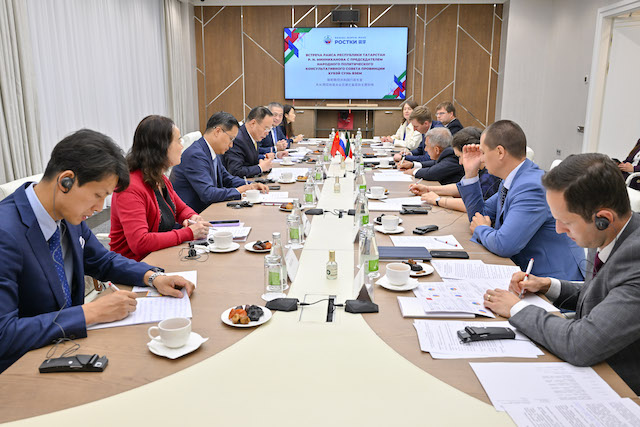 На форуме «РОСТКИ» в Казани Раис Татарстана Рустам Минниханов встретился с председателем народного политического консультативного совета китайской провинции Хубэй Сунь Вэем.