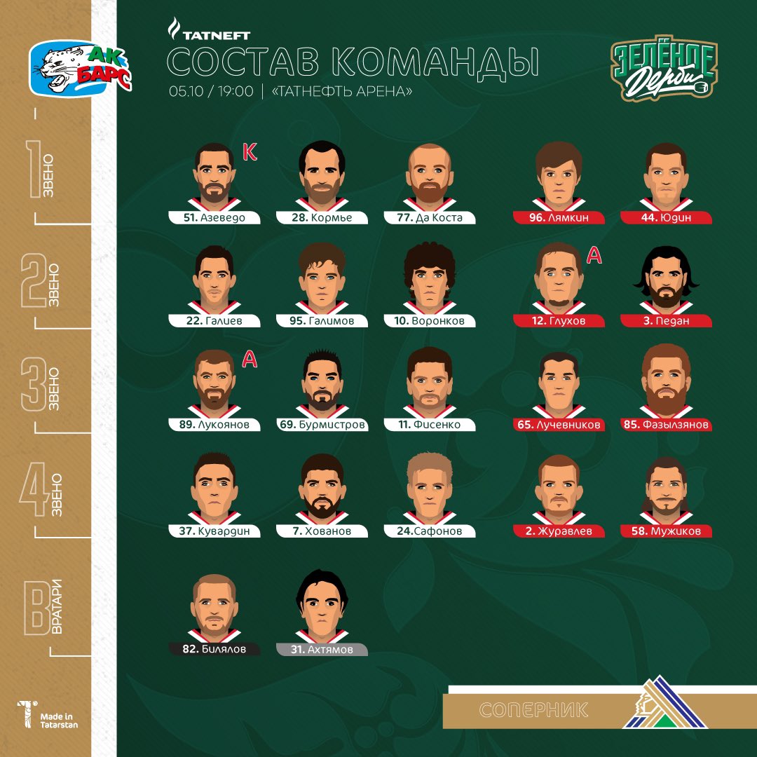 Игру у казанцев также пропустят Никита Дыняк, Кирилл Петров. При этом, отметим возвращение молодого форварда Воронкова в состав после травмы.
