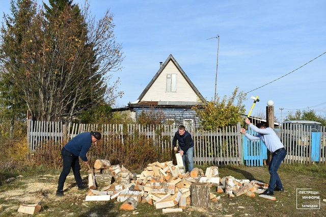 Глава Пестречинского района Татарстана Ильхам Кашапов, совместно с главой исполкома Вадимом Никитиным и главой сельского поселения Ильшатом Ахметзяновым помогли наколоть дрова семье бойца СВО.