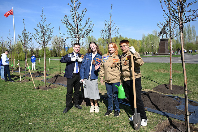 Так, в рамках мероприятия в парке Победы высадили 80 яблонь. Вместе с градоначальником в посадке деревьев участвовали юнармейцы, Волонтеры Победы, Молодая Гвардия, а также студенческий строительный отряд.