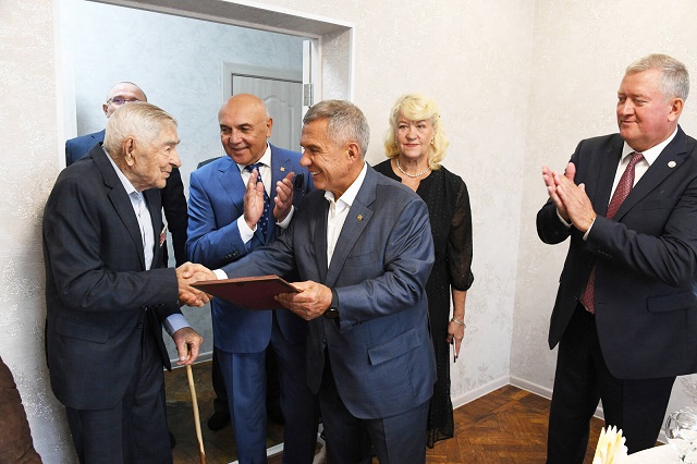 «Вы гордость не только Заинского района, но и всей республики. От всей души поздравляю с юбилеем и желаю крепкого здоровья», — сказал Минниханов и вручил ветерану Благодарность Раиса Татарстана.