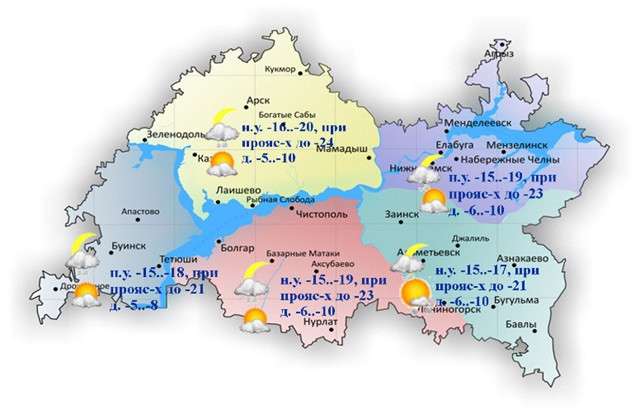 Синоптики информируют, что предстоящими ночью и утром в РТ температура воздуха понизится до -15…-20 градусов, при прояснениях мороз усилится до -24 градусов. В дневные часы ожидается от -5 до -10 градусов.