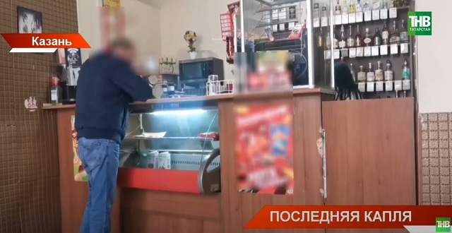 Это кафе в Ново-Савиновском районе. О том, что сюда давно протоптана тропинка любителями выпить. У входа нас встречает мужчина подшофе. Заходим внутрь. На прилавке крепкий алкоголь, за витриной только вишневый сок.