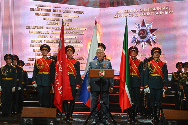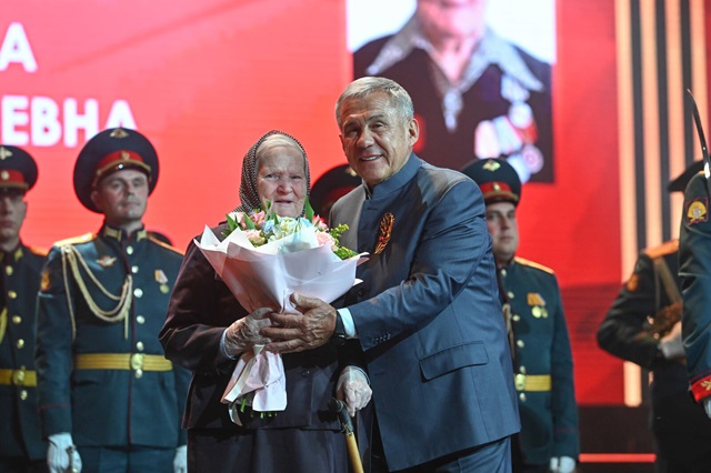 «Дорогие ветераны! Ваша вера в правое дело и беззаветная преданность Отечеству всегда будут для нас образцом высокой нравственности и истинного патриотизма. Наш священный долг — воспитать подрастающее поколение на доблестных примерах народа-победителя. Сегодня на защиту Родины и её будущего встали участники специальной военной операции. Это люди чести и совести, настоящие патриоты своей страны, которые достойно продолжают дело доблестных предков, отстаивая право нашего народа на независимость», — отметил Рустам Минниханов и поприветствовал участников СВО, которые были в зале.