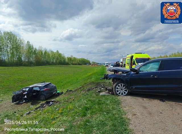 26 апреля в Лаишевском районе Татарстана водитель автомобиля Audi выехал на полосу встречного движения, где совершил лобовое столкновение с Kia. Об этом сообщает пресс-служба Госавтоинспекции района.