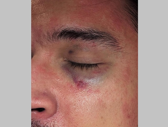 Калмыков снял побои. У него разбит глаз, внутренняя гематома щеки и надкостницы челюсти, отдавлен палец на руке и травмировано колено.