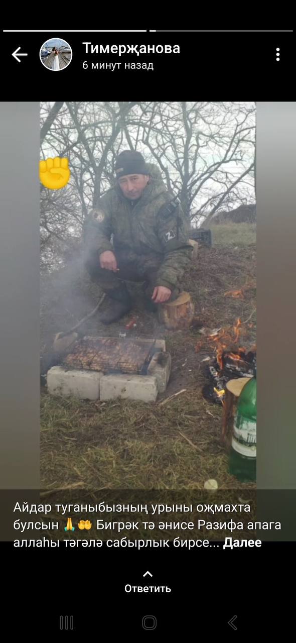 "Айдар туганыбызның урыны оҗмахта булсын. Бигрәк тә әнисе Рәзифә апага Аллаһы Тәгалә сабырлык бирсен», –