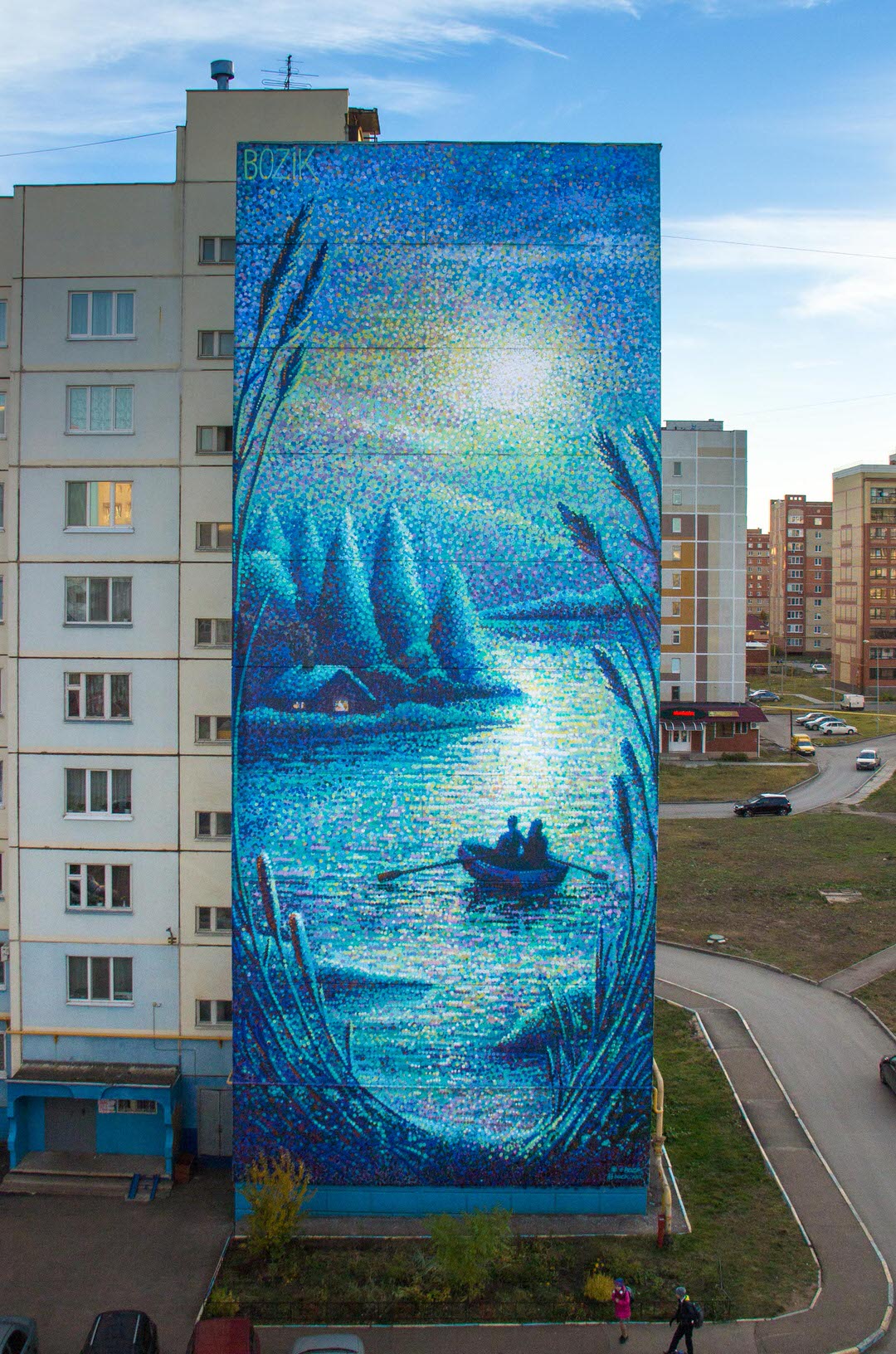 Художник из Казани с псевдонимом Дамир Bozik — прямое тому доказательство. Он превратил невзрачный пятиэтажный дом в огромный холст, на котором изображен поэт Габдулла Тукай, и это выглядит очень круто.
