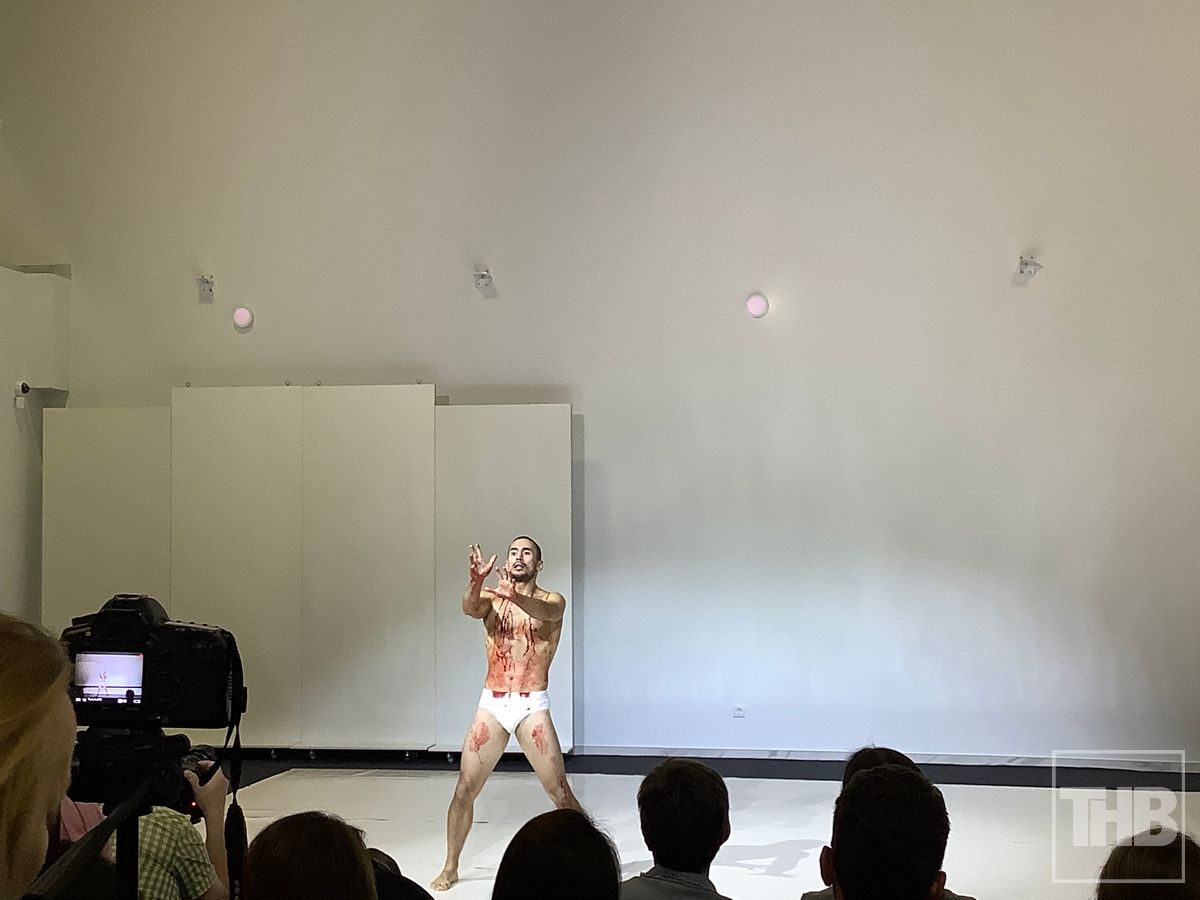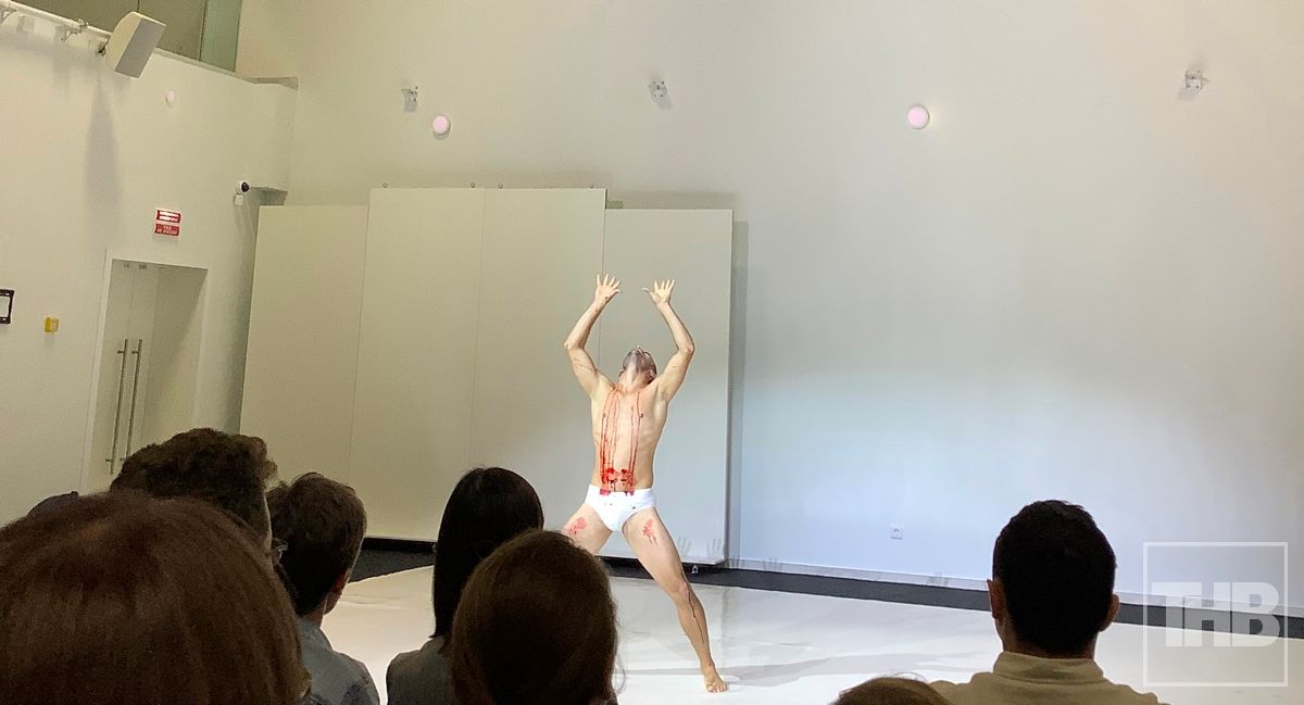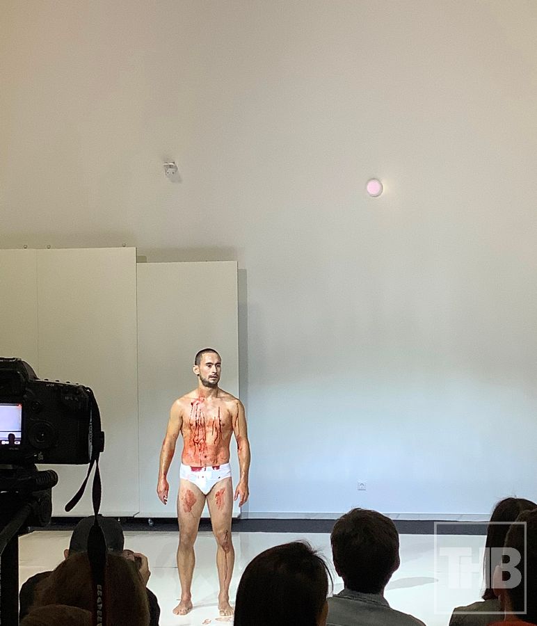 Перед началом хореографического спектакля-перформанса режиссер Туфан Имамутдинов предупредил зрителей о том, что в представлении будут сцены с кровью, и попросил покинуть зал тех, кто не переносит ее вида.