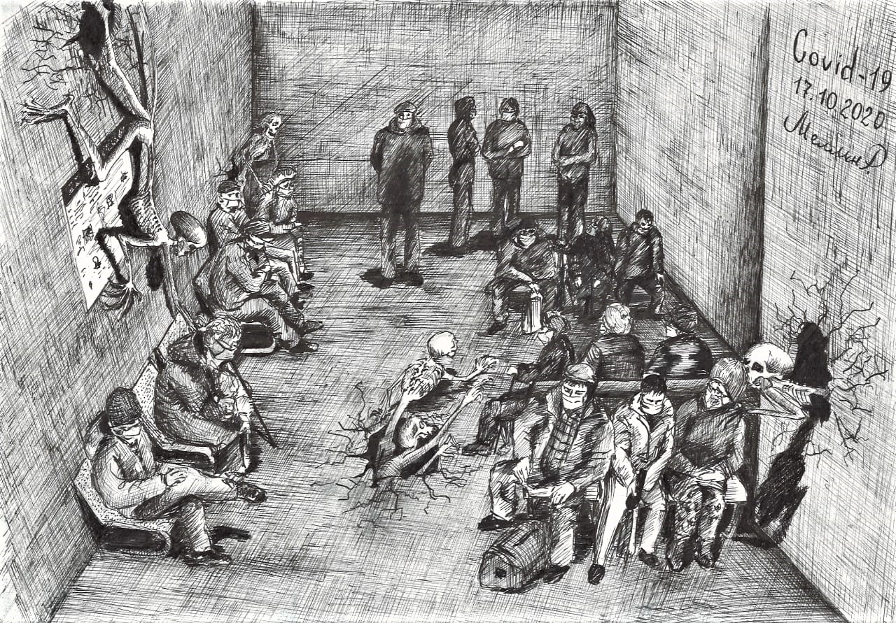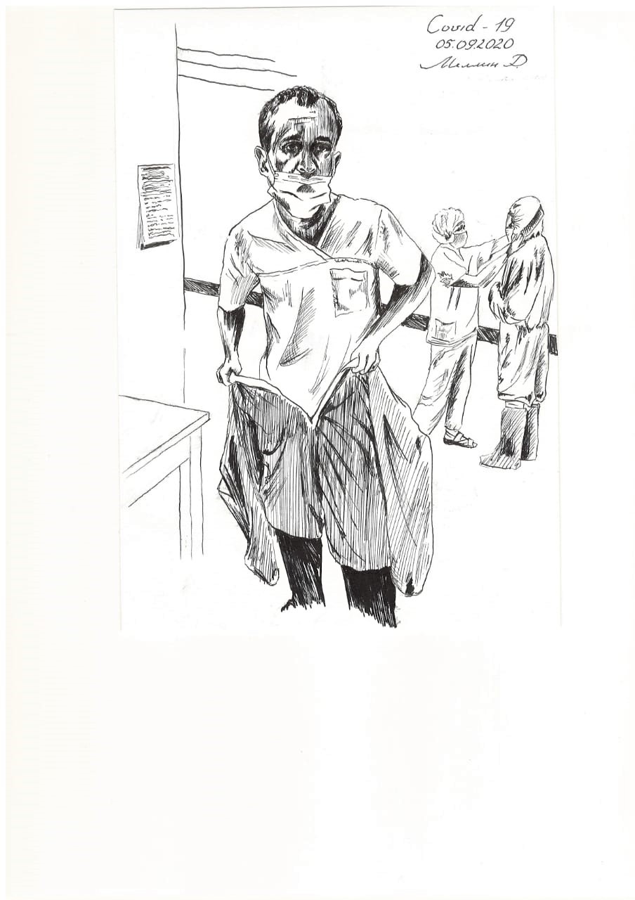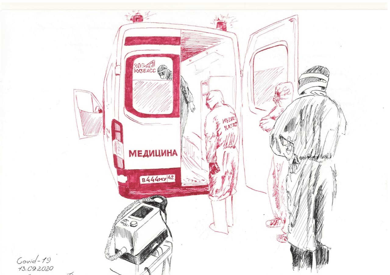 Действительно, после второго захода в ковидарий я больше чем в первый раз проводил в «красной зоне» и времени не хватало – нарисовать все, что я хотел. Появилось много эмоций, тем, которые я хочу раскрыть в массы, показать всю трагедию, которая сейчас происходит.