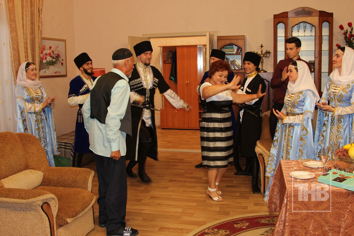 Все домашние и гости не ожидают такого поворота, неожиданно в их квартире появляется целый грузинский ансамбль во главе их бабушки – Розы. По началу, на их лицах удивление, а спустя несколько секунд они уже всей семьей танцуют под звуки грузинских мотивов.