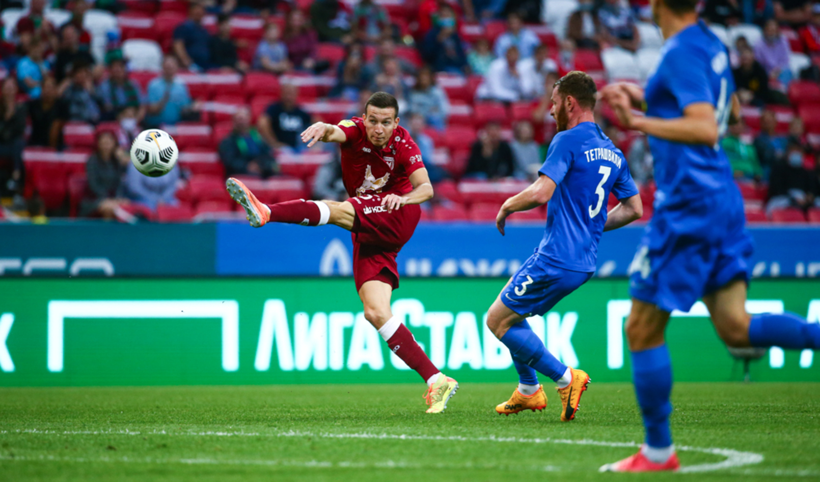 Так или иначе праздничная тема вне футбольного поля была отработана от и до. Но это была не единственная "замануха" внешне проходного матча. Дело в том, что легендарный для "Рубина" вратарь Сергей Рыжиков и в свои 40 лет остается востребованным игроком в РПЛ. Перед началом нового сезона он как раз перешел в "Тамбов". Накануне тренерский штаб гостей именно его поставил в ворота своей команды.