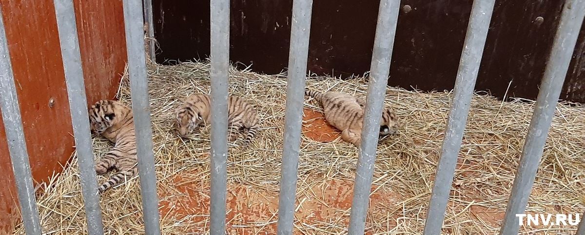 У маленьких тигрят глаза откроются только через 2 недели. Пока они находятся в одной клетке с мамой Магдой, и отца в целях безопасности к ним не пускают. Тигрица ведет себя как настоящая мать, близко к детям не подпускает никого кроме дрессировщика – ему она доверяет.