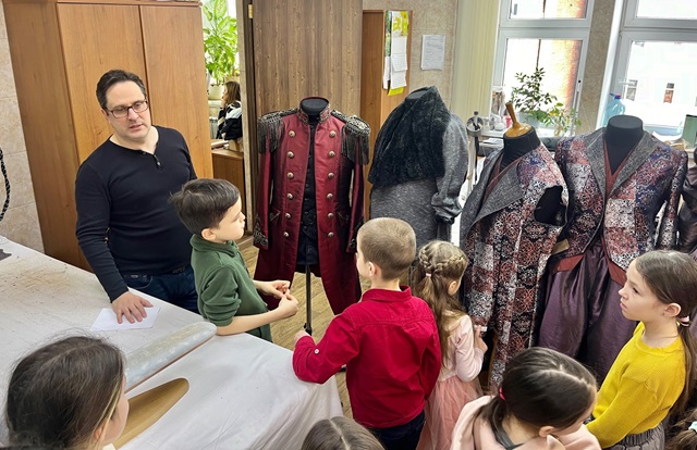 Народный артист Татарстана Илья Славутский провел для них экскурсию по закулисной части, рассказал о процессе создания спектакля, показал репетиционный зал, балетный класс, гримерный, костюмерный, обувной, реквизиторский, декорационный и пошивочный цеха, гримерки, и, конечно, сцену.