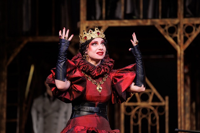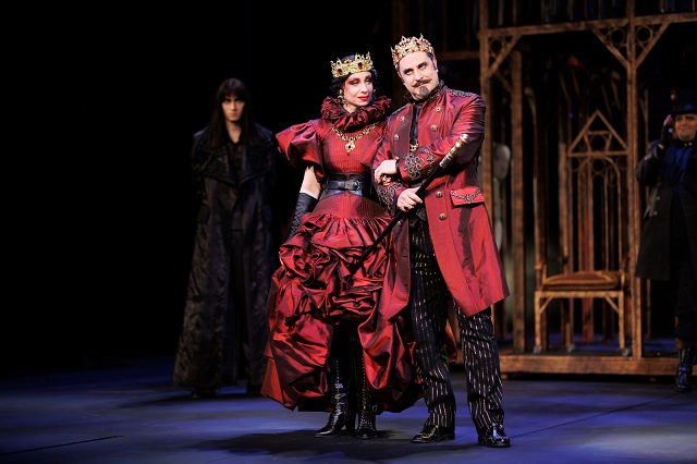 — И мы вместе с Александром Яковлевичем сочиняли, думали, решали, и пришли к очень интересному решению. Потому что эти два персонажа — Клавдий и Гертруда — они немного и Макбет и леди Макбет, и в Клавдии есть немного и от Ричарда III, и буквально несколько фраз, которые дополнили эту пьесу из пьесы «Макбет», решили этот образ, и помогли мне, как актрисе найти что-то важное и нужное в этом персонаже.