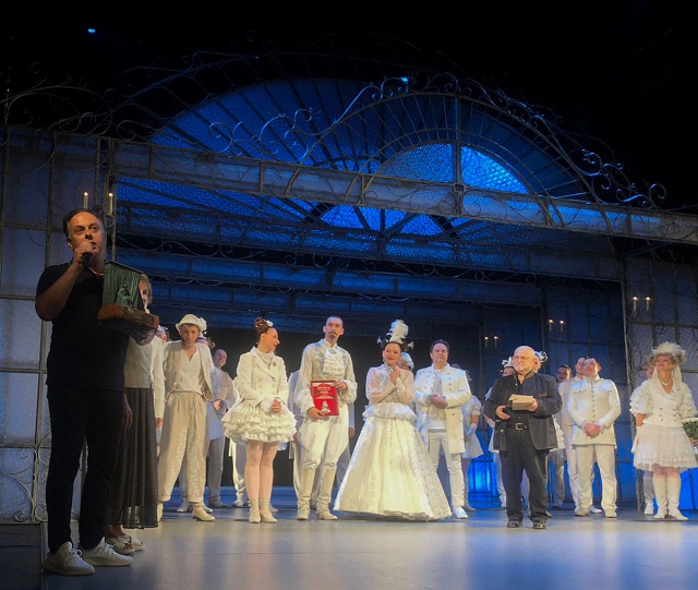 В финале зал встретил качаловцев овациями и криками «браво», а Кирилл Крок и Марина Райкина вручили диплом участника фестиваля «Вахтангов. Путь домой» и памятный подарок — точную копию памятника у здания театра в Москве.