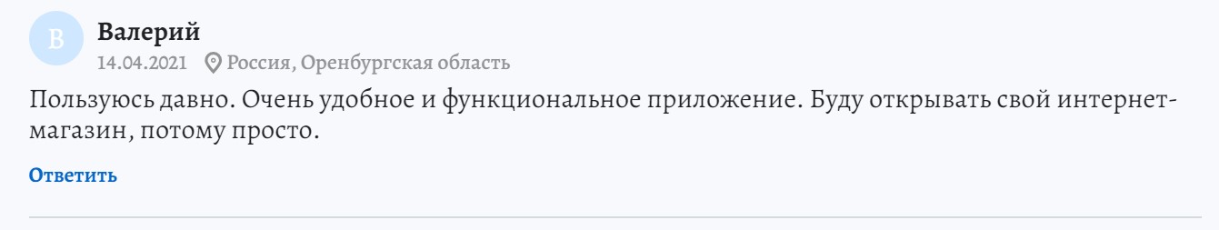 Пользуюсь давно. Очень удобное и функциональное приложение. Буду открывать свой интернет-магазин, потому просто.