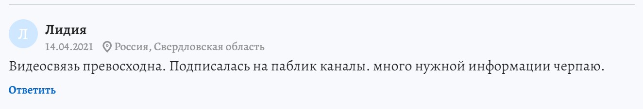 Видеосвязь превосходна. Подписалась на паблик каналы. много нужной информации черпаю.