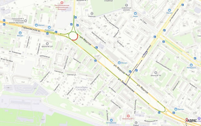 Также сообщается, что автобусы маршрутов №22 и №46 будут двигаться от Горьковского шоссе по улице Болотникова с разворотом на улицу Фрунзе в районе улицы Кулахметова.