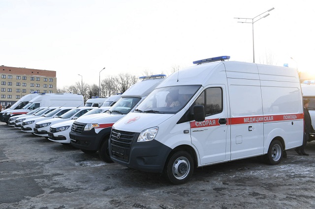Среди них автомобили скорой медицинской помощи, легковушки «Лада Гранта», микроавтобус «Газель NEXT» и мобильный медицинский комплекс на базе автомобиля «Камаз».