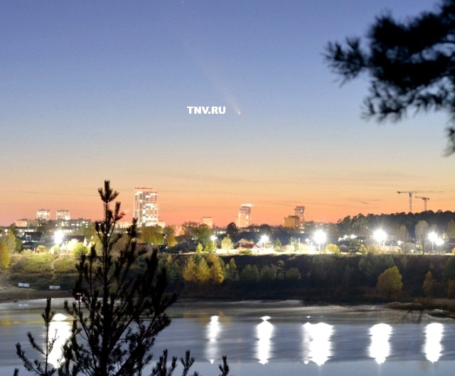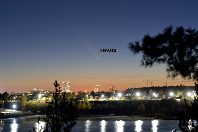 По словам Дмитрия Волкова, кадры были сделаны сегодня, в воскресенье 13 октября, на озере Изумрудное (Карьер) недалеко от казанского поселка Юдино. Для определения местоположения кометы казанец воспользовался специальным приложением для астрономов, компасом и биноклем.