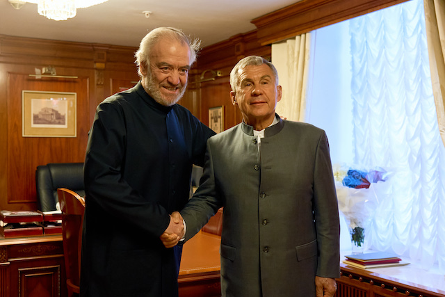 Перед представлением Минниханов пообщался с дирижером, художественным руководителем и генеральным директором Мариинского театра, генеральным директором Большого театра Валерием Гергиевым.