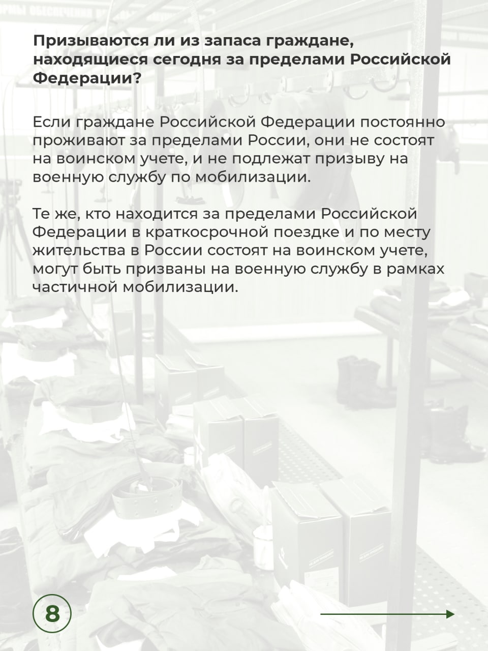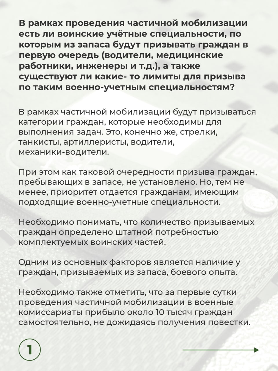 10 карточек с ответами на часто поступающие вопросы о частичной мобилизации в России разместило в своем t-канале Минобороны РФ.