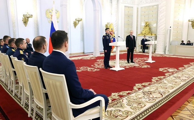 Золотые звезды вручены еще десяти Героям России. Двое из них — полковники Максим Стефанов и Сергей Демьяненко — представляют различные подразделения 929-го Государственного летно-испытательного центра Минобороны РФ, еще двое — майор Борис Дудко и ефрейтор Давид Малыйкин — служат в 76-й гвардейской десантно-штурмовой дивизии ВДВ.