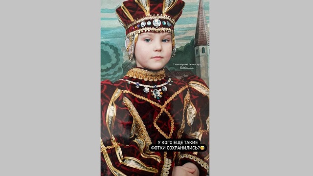 На другом снимке маленькая Алия Карачурина запечатлена в образе царицы. «У кого еще такие фотки сохранились?», — спросила подписчиков певица.