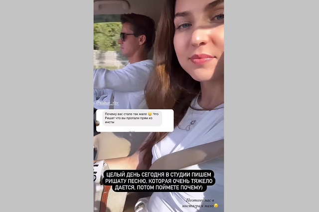 Супруга артиста Алия Тухватуллина на своей странице в соцсети ответила подписчикам, на вопрос, почему они стали реже публиковать посты. «Целый день сегодня в студии, пишем Ришату песню, которая очень тяжело дается, потом поймете, почему», — рассказала певица.