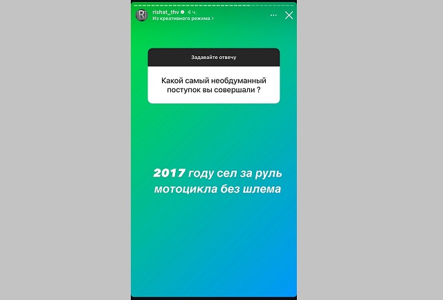 «В 2017 году сел за руль мотоцикла без шлема», — поделился Тухватуллин.