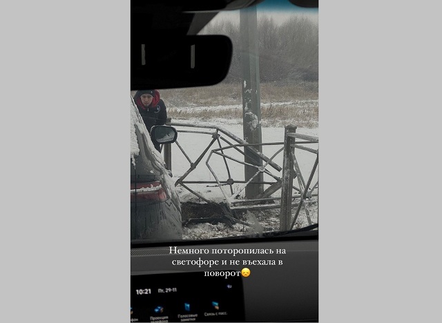 «К сожалению, сегодня не самое доброе утро. Немного поторопилась на светофоре и не въехала в поворот», — рассказала артистка.