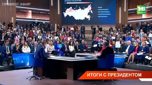 Пресс-конференция, совмещенная с прямой линией, шла четыре с половиной часа. О самом актуальном в репортаже корреспондента ТНВ Рамиля Галиуллина.