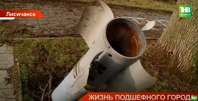В Лисичанске один из самых уродливых арт-объектов современности — кассетный боеприпас ракетной установки. На фоне взорванных и сгоревших жилых домов этот остов реактивного снаряда, как символ жестокости и насилия.
