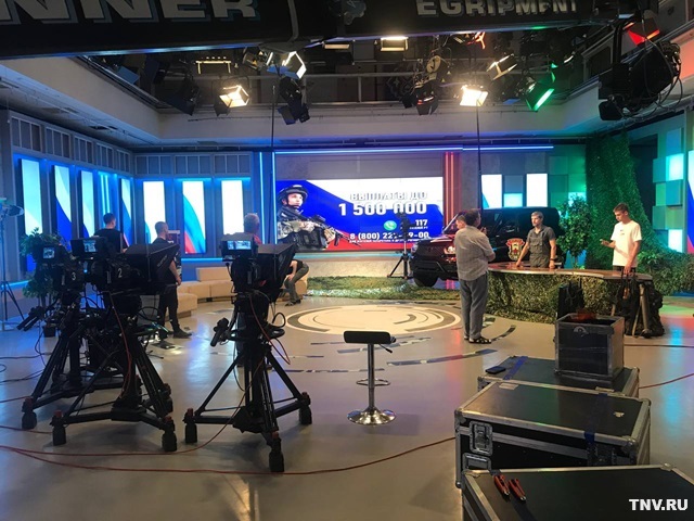 В эти минуты в студии ТНВ полным ходом идет подготовка к 12-часовому телемарафону «Вступай в армию Победы!», который пройдет 15 июля с 08:00 до 20:00. Оформление студии происходит в патриотической стилистике.