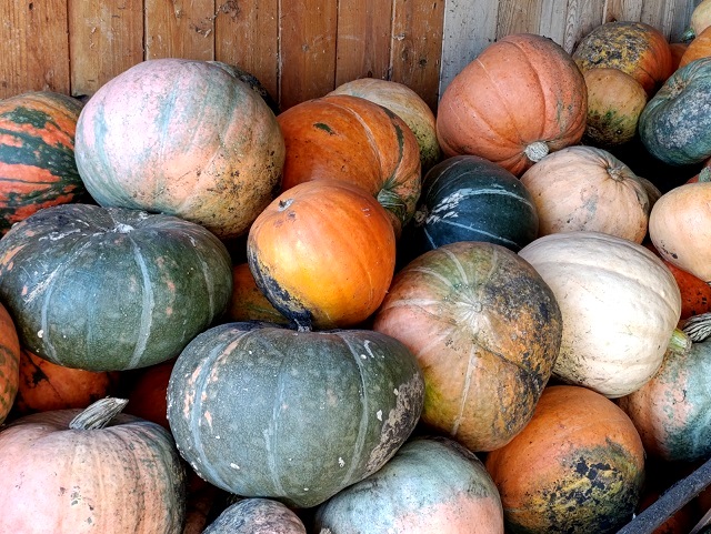 Огород Розы Кулдашевой усеян желтыми, зелеными, белыми тыквами разных размеров. Они растут не только на земле, но и на заборе и даже на дереве — самые крупные из них весят от 40 до 50 кг.