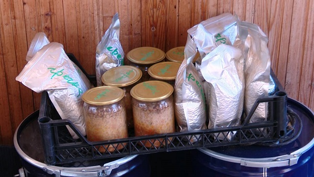 Волонтер укладывает в вакуумную упаковку мясо, жареный лук с морковью, крупу, специи и горячий бульон. После этого пакеты отправляются в автоклав — при температуре 125 градусов под высоким давлением каша готовится несколько часов. Крупу мужчине поставляют волонтерские штабы.