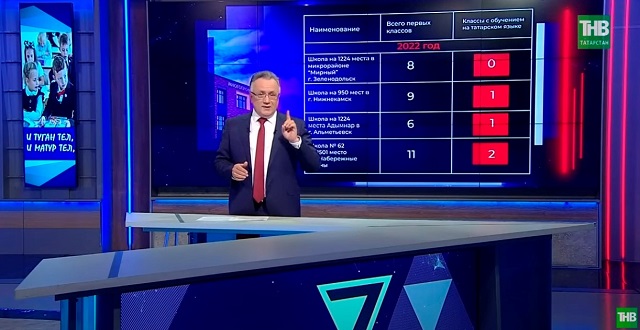 В очередном выпуске программы «7 дней» гендиректор ТНВ Ильшат Аминов напомнил, что в период между двумя переписями населения число лиц владеющих татарским языком в России сократилось более чем на миллион человек.