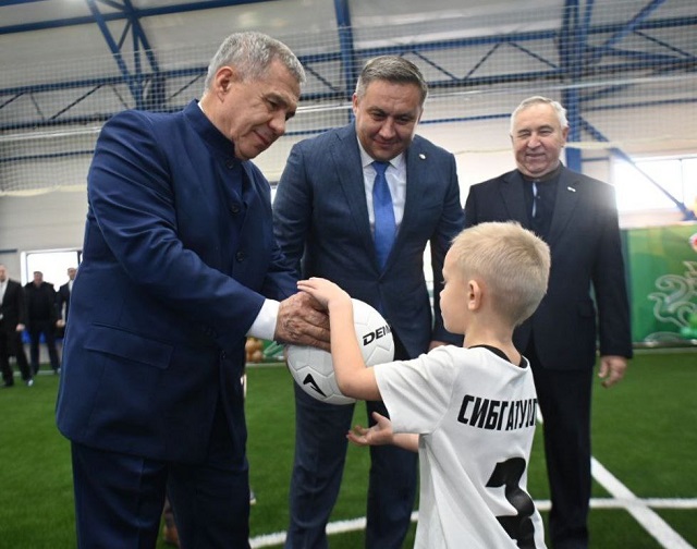 Президент Татарстана Рустам Минниханов принял участие в торжественном открытии футбольных манежей в поселке Высокая Гора, а также в режиме видеоконференцсвязи — в Буинске и Мензелинске.