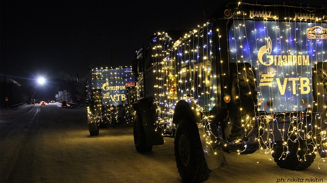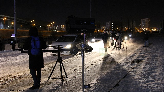 Съёмки финальных сцен фильма прошли минувшей ночью на одном из мостов Казани. Для масштабных кадров с легендарными «Камазами» специально перекрыли мост. Гоночные автомобили украсили праздничными огнями.