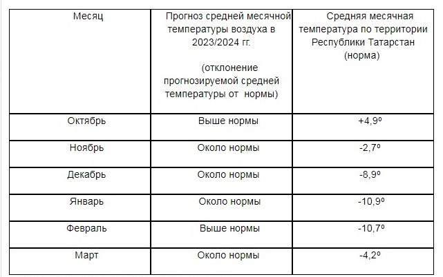 В Управлении по гидрометеорологии и мониторингу окружающей среды Татарстана опубликовали вероятностный прогноз температурного режима в РТ на отопительный период 2023/2024 сезона.