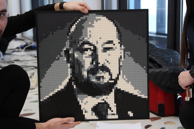В качестве подарка телеканал ТНВ презентовал Асгату Сафарову его портрет, собранный из лего-мозаики.