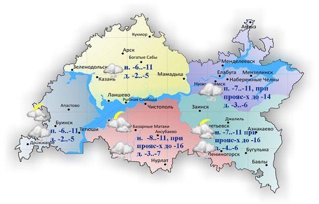 В Казани предстоящей ночью температура воздуха понизится до -6…-8 градусов, при прояснениях до -11 градусов. Максимальная температура воздуха в столице РТ в дневные часы составит от -2 до -4 градусов.
