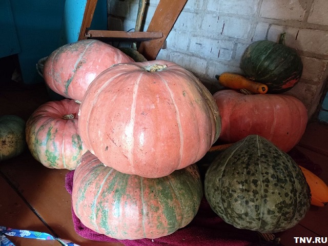 Жительница села Большие Ачасыры Зеленодольского района Татарстана Гульфания Бикмуллина поделилась с редакцией сайта ТНВ фотографиями своего урожая тыкв, среди которых есть необычные экземпляры.