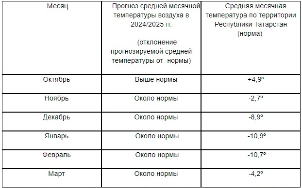 Специалисты Управления по гидрометеорологии и мониторингу окружающей среды Татарстана опубликовали вероятностный прогноз температурного режима в РТ на отопительный период 2024 — 2025.