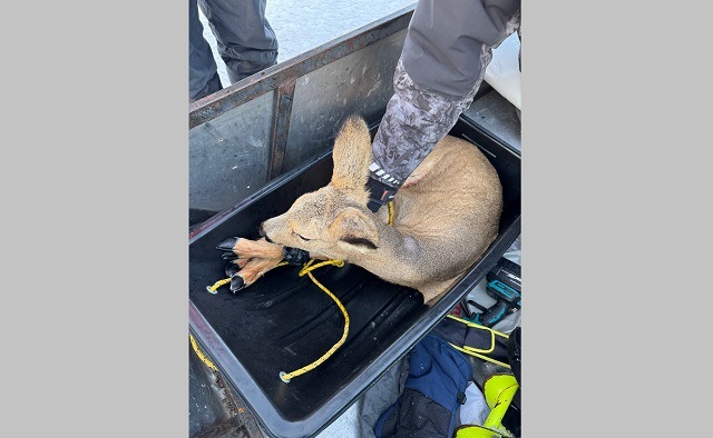 В Камском Устье рыбаки во время рыбалки на Волге заметили молодую обессиленную косулю, которая скользила по льду и не могла передвигаться