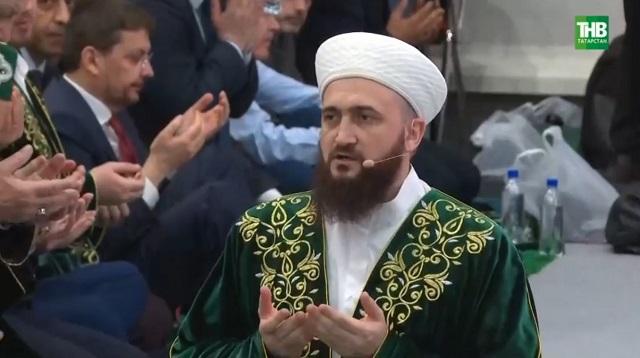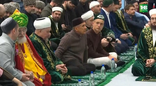 В первых рядах Рустам Минниханов, консулы других стран, представители министерств, духовенство. Среди приглашенных гостей — муфтии Донецка, Луганска, делегаты из Бахрейна, Катара и Арабских Эмиратов. Вечернюю молитву провел муфтий Татарстана Камиль хазрат Самигуллин.
