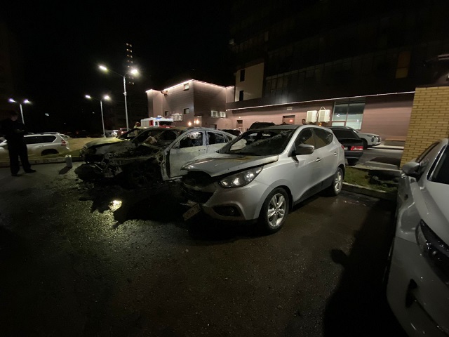 Две иномарки сгорели дотла, еще пять автомобилей повреждены частично.